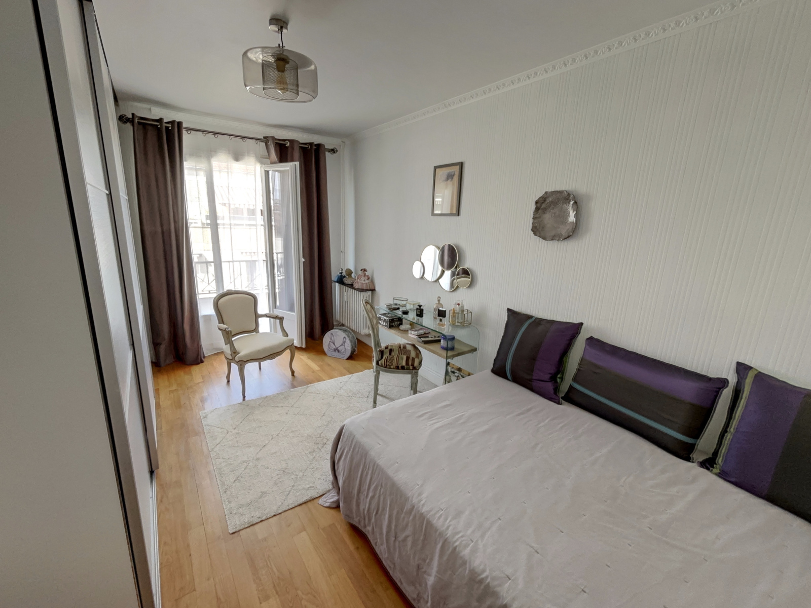 Il se compose d'une entrée et dégagement desservant un séjour de 26.70 m² avec parquet chêne ouvrant sur balcon, une cuisine équipée récente ouvrant sur balcon avec stores. 2 chambres avec de grands placards / penderies ayant également un accès au balcon, salle d'eau récente avec douche à l’italienne. WC indépendant avec lave-mains