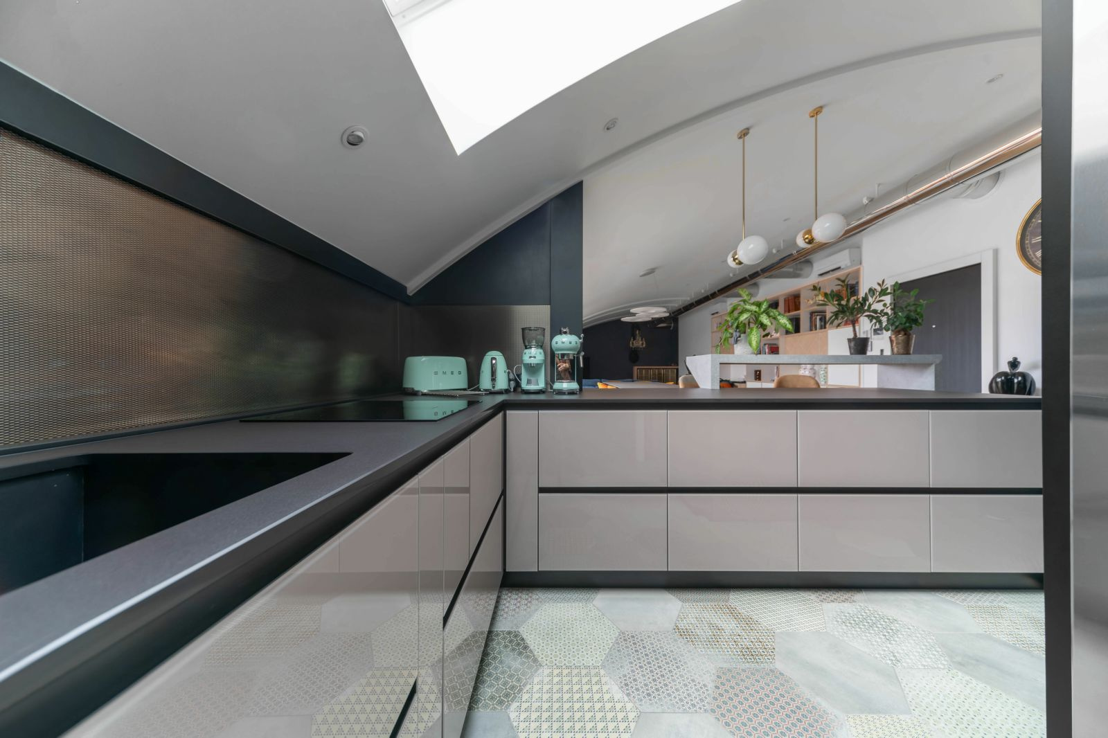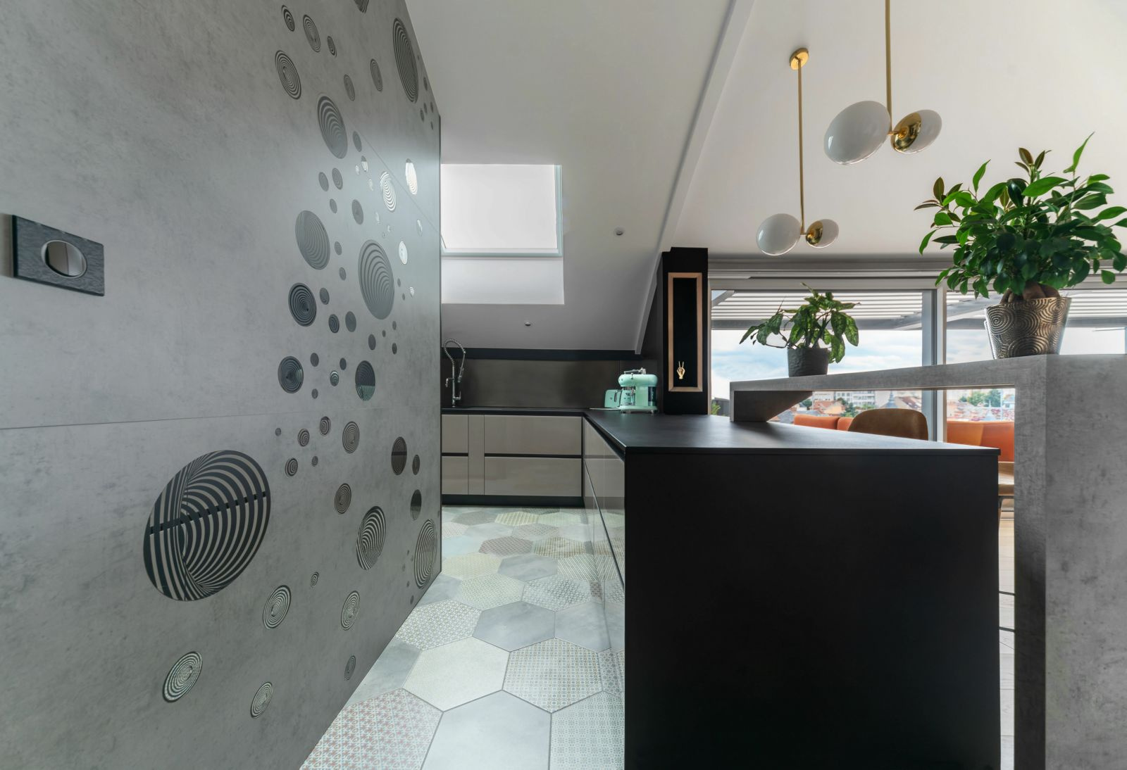 La pièce de vie de 74 m² (84 m² au sol) avec cuisine équipée ouverte est agrémentée de larges baies vitrées s'ouvrant totalement sur la terrasse avec pergola bioclimatique alliant un cadre de vie exclusif sans vis à vis.