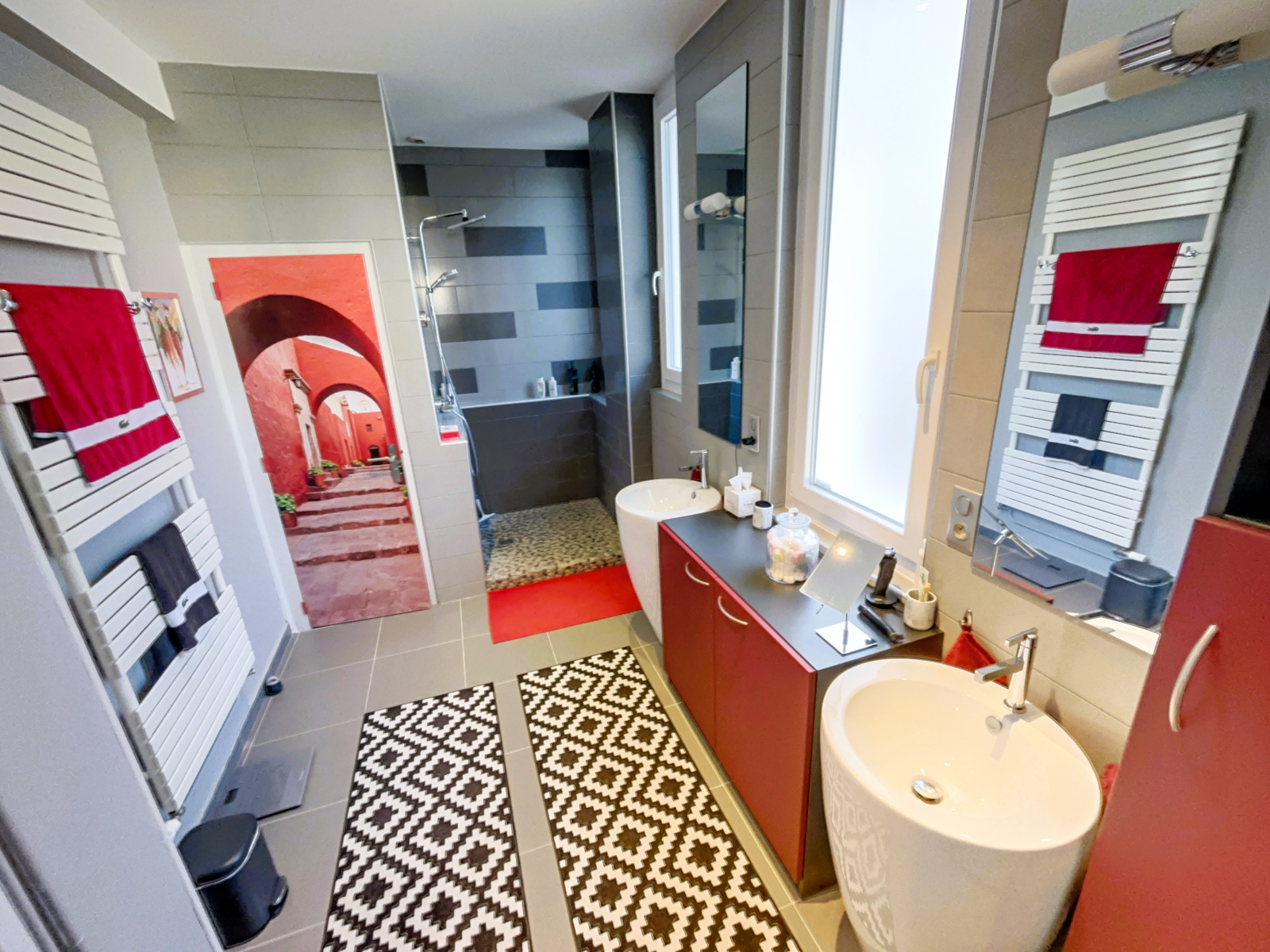 Une suite parentale avec salle de douche, dressing et wc, une chambre d'amis avec sa douche privative, une troisième chambre avec placard ; un second wc.