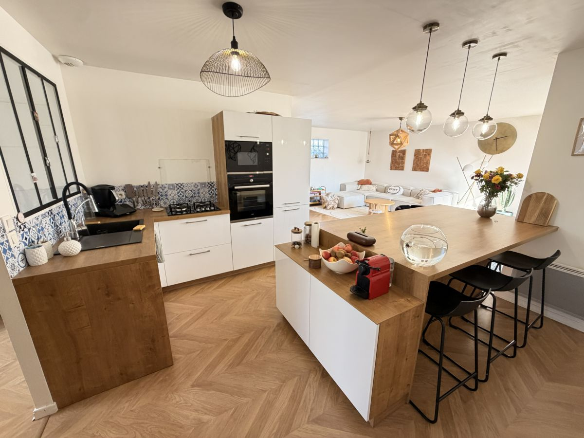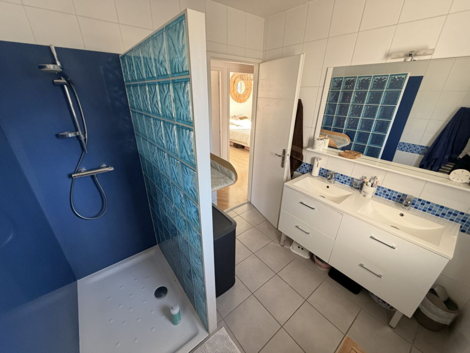 Construite en 2011, cette maison fonctionnelle et lumineuse se compose d’une entrée ouvrant sur une cuisine ouverte entièrement équipée avec arrière-cuisine, idéale pour le rangement et l’organisation du quotidien. Le salon climatisé de 28 m² offre un bel espace de vie convivial et s’ouvre directement sur la terrasse, parfaite pour profiter des beaux jours.