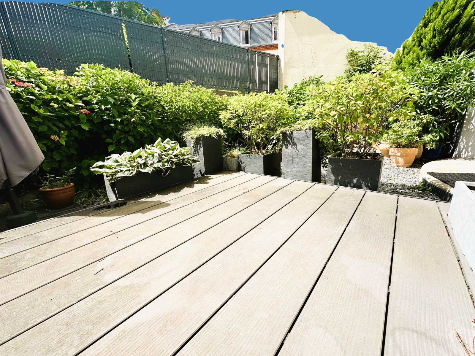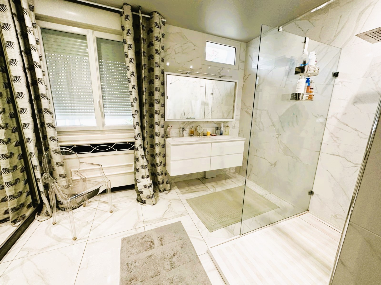 Entièrement rénovée avec des prestations très haut de gamme, elle se compose en rez-de-chaussée d'une entrée, chambre (ou bureau), cuisine d'été avec accès au jardin, buanderie, toilette, garage double (47 m²) avec porte motorisée.