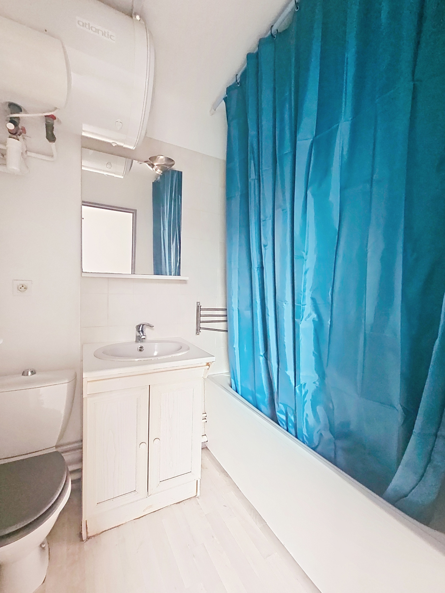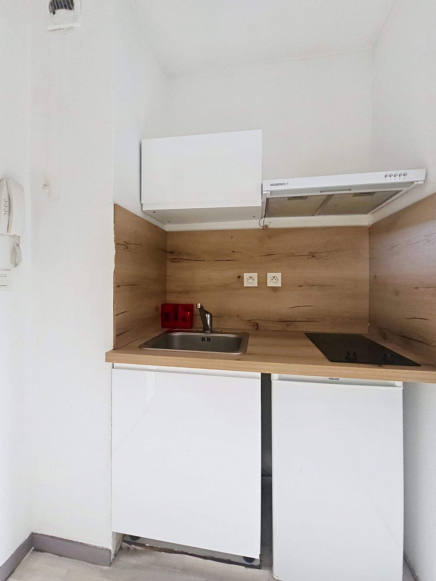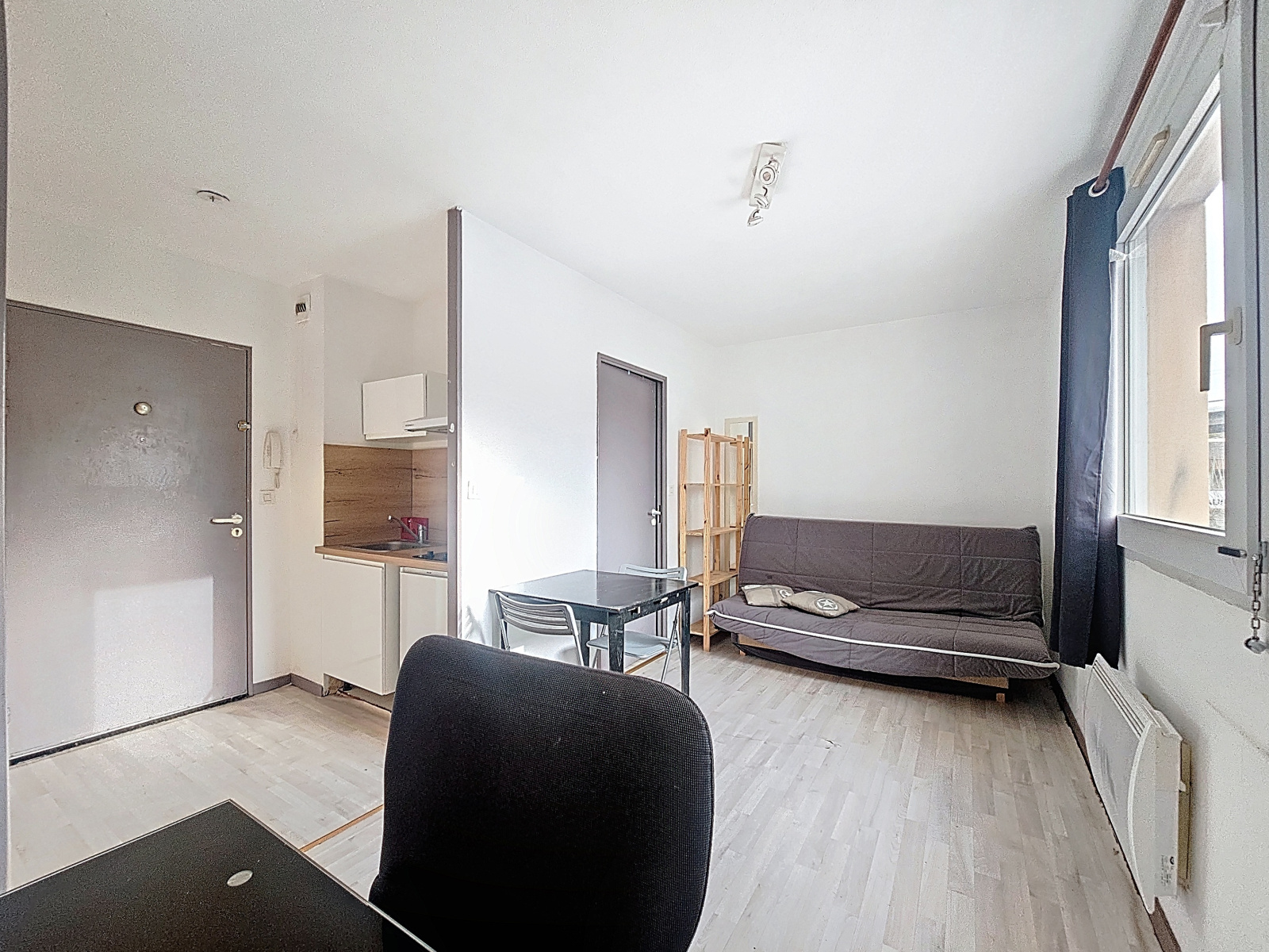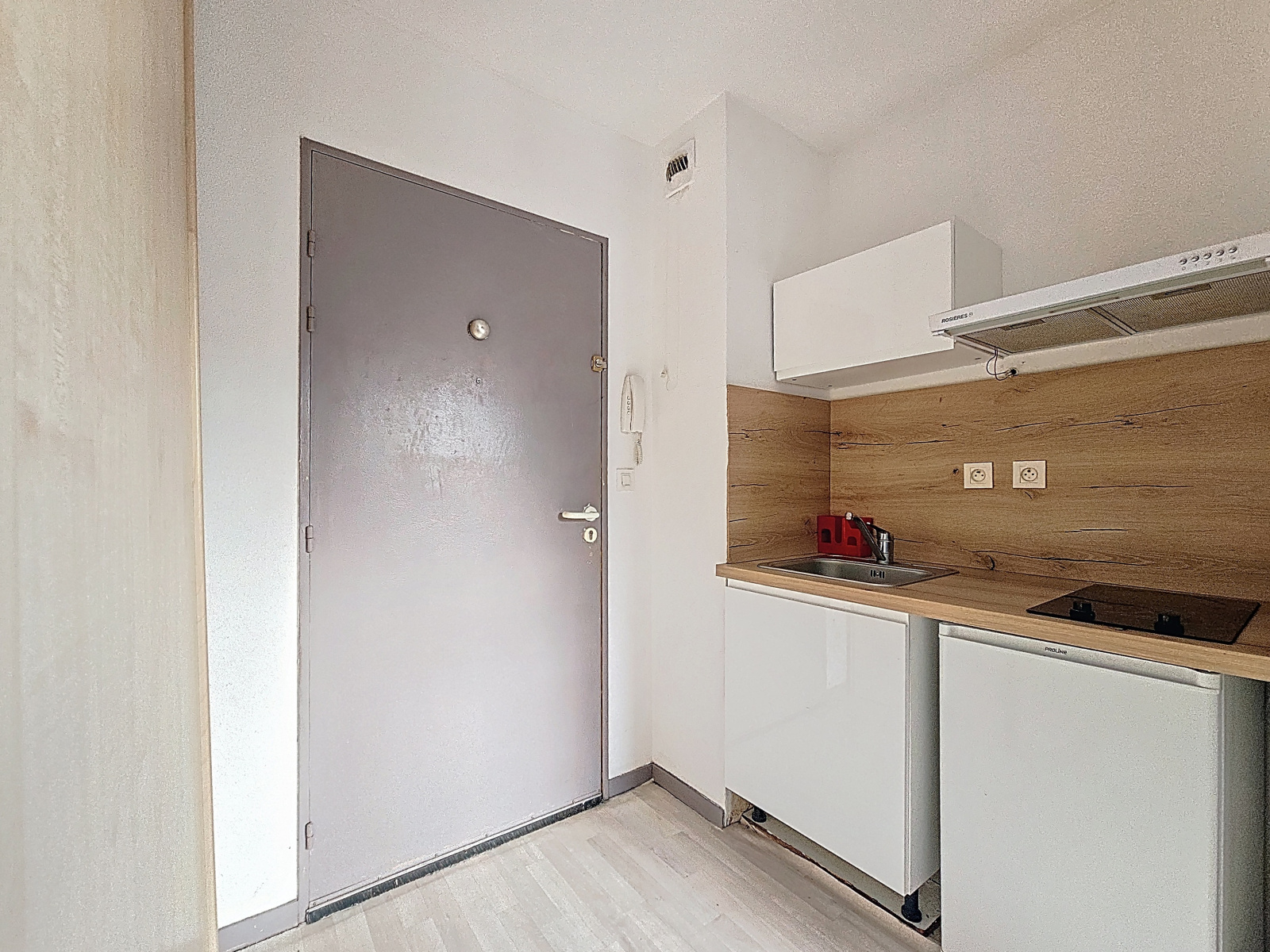 Lumineux et idéalement placé, dans une résidence sécurisée avec ascenseur, cet appartement offre une entrée avec rangement, une belle kitchenette aménagée, une belle pièce de vie (11,54 m²) pouvant se modeler à votre guise, et une salle de bain-WC.