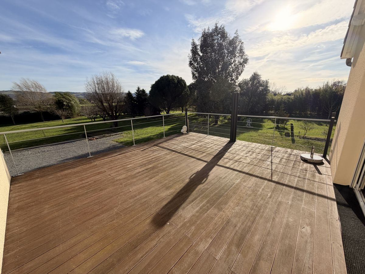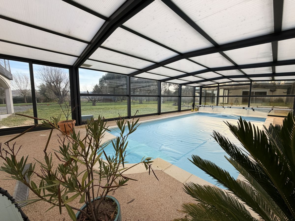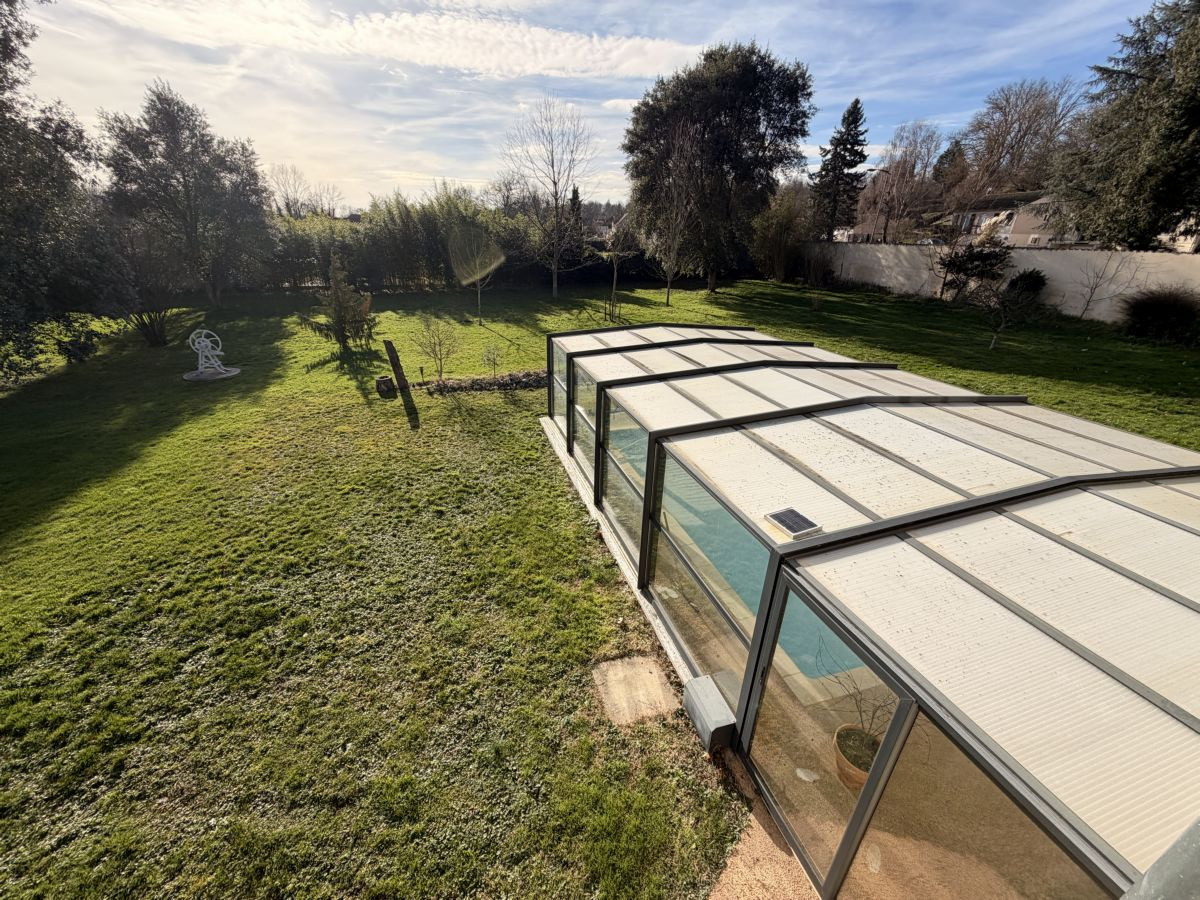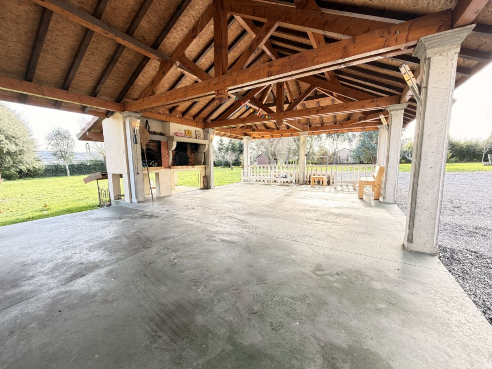 Les espaces extérieurs sont aménagés avec une grande terrasse couverte de 65m² disposant d'un coin barbecue et four à pizza.