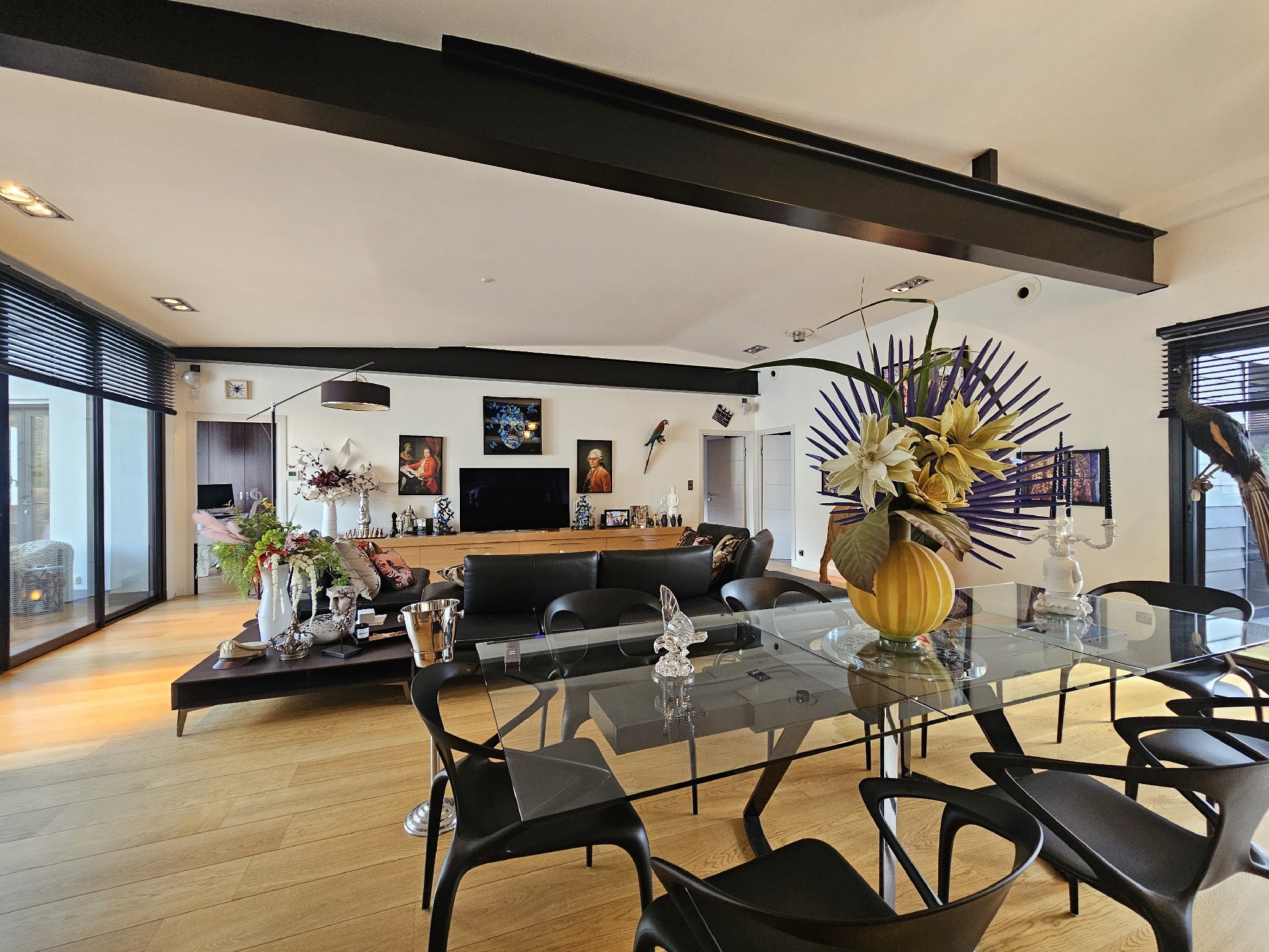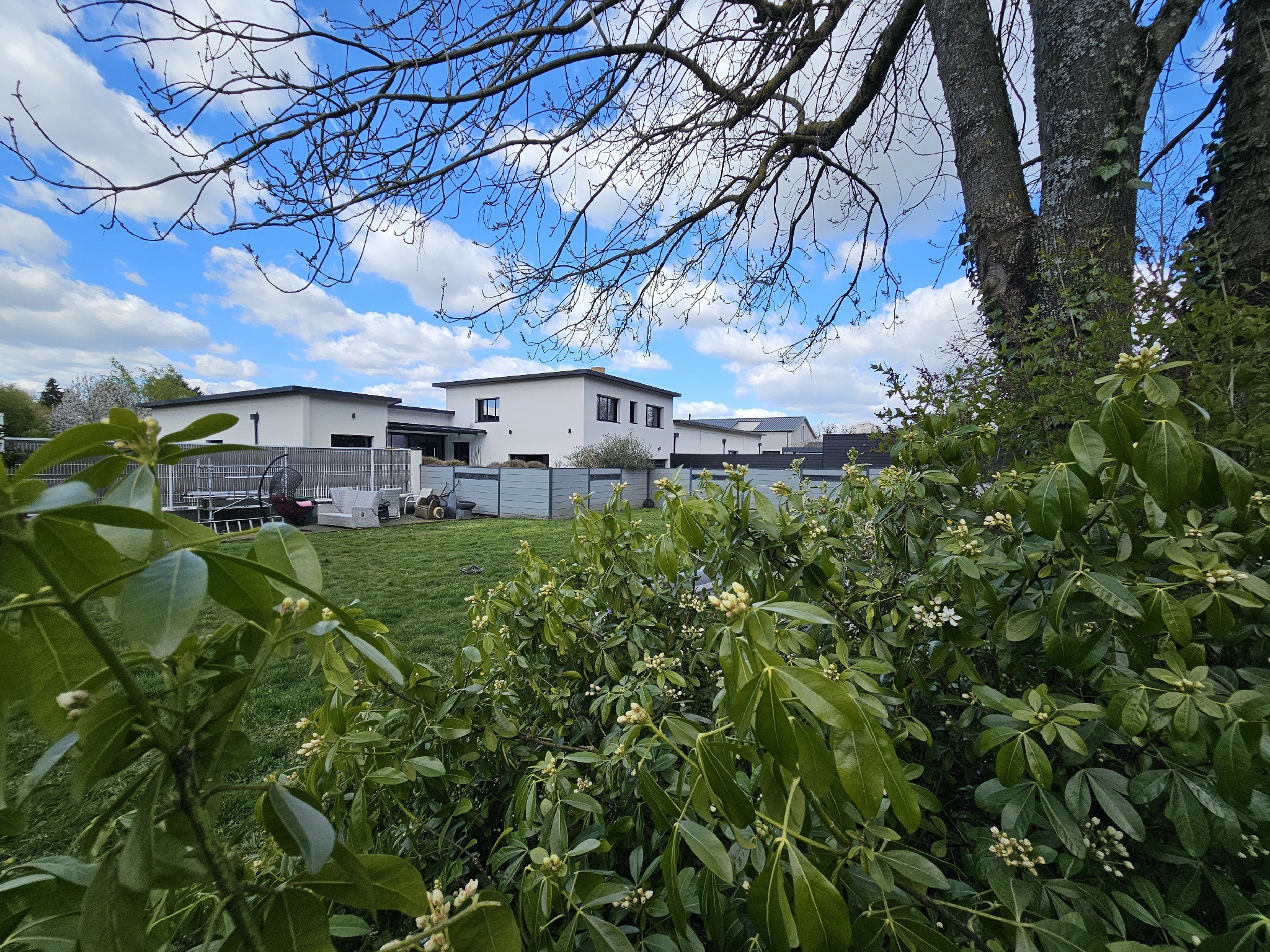 Implantée sur un terrain clos et arboré, au calme et piscinable, cette propriété séduit immédiatement par sa luminosité, ses lignes modernes et ses vastes espaces de vie ouverts sur l’extérieur.