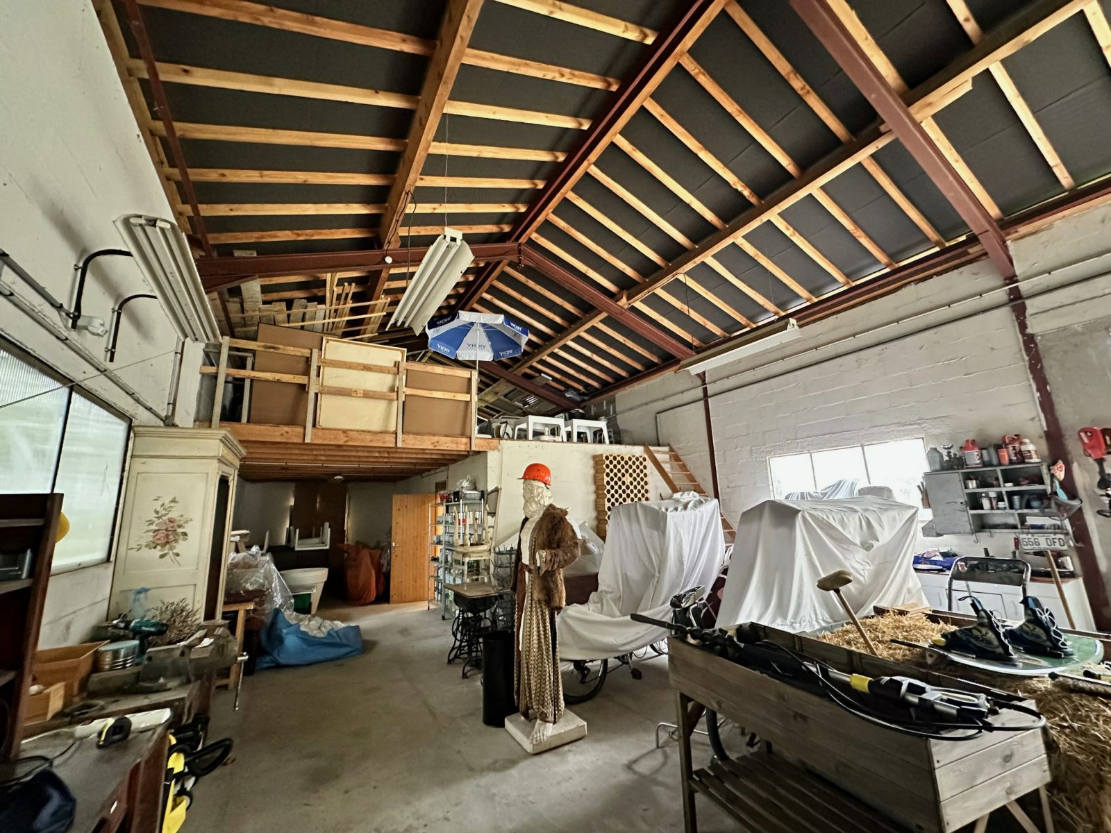 Dépendance d'environ 100 m² au sol + espace mezzanine, garage attenant et grand grenier sur une partie de la maison.